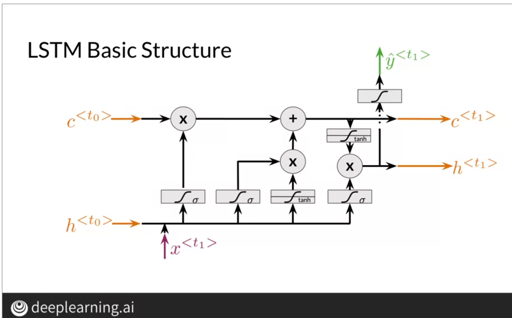 - 右のtanhとシグモイド: output gate。メモリーから次の状態を計算。